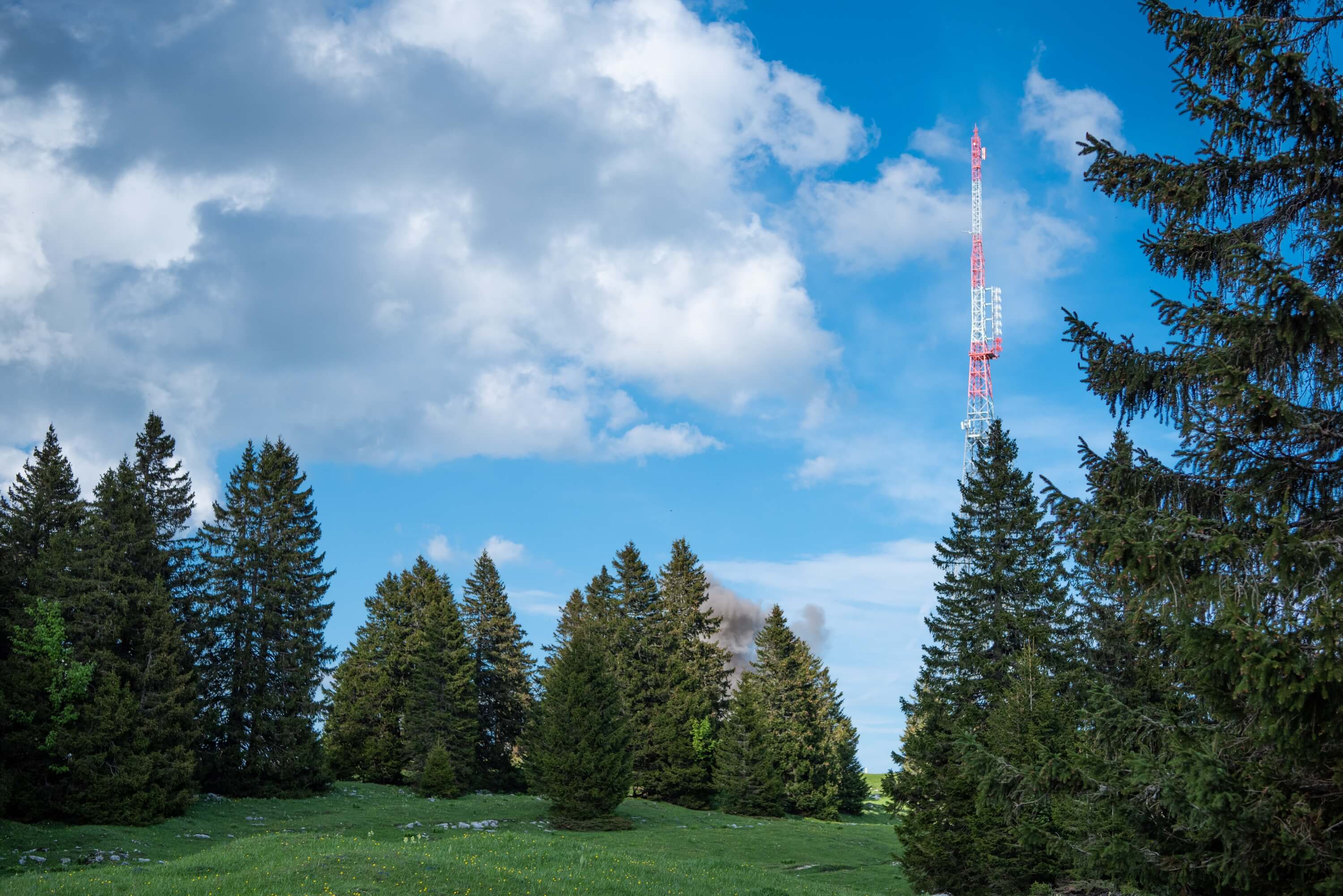 Während die Leistung moderner Sendetechnologien immer grösser wird, kommen die Sendeanlagen mit immer weniger Platz und Energie aus. Aus ökologischen wie ökonomischen Gründen hat Swisscom Broadcast die Sendeanlage «La Dôle» in mehreren Schritten umgebaut. Das neue Betriebsgebäude und der neue Mast wurden im Herbst 2017 in Betrieb genommen. Als nächster Schritt steht der Rückbau der alten Sendeanlage an; die heutige Sprengung legt die Grundlage dafür. Bis Herbst 2018 werden sämtliche Um- und Rückbauarbeiten abgeschlossen sein. Danach ist ein Tag der offenen Tür der Sendeanlage «La Dôle» für Anwohner und Interessierte geplant.