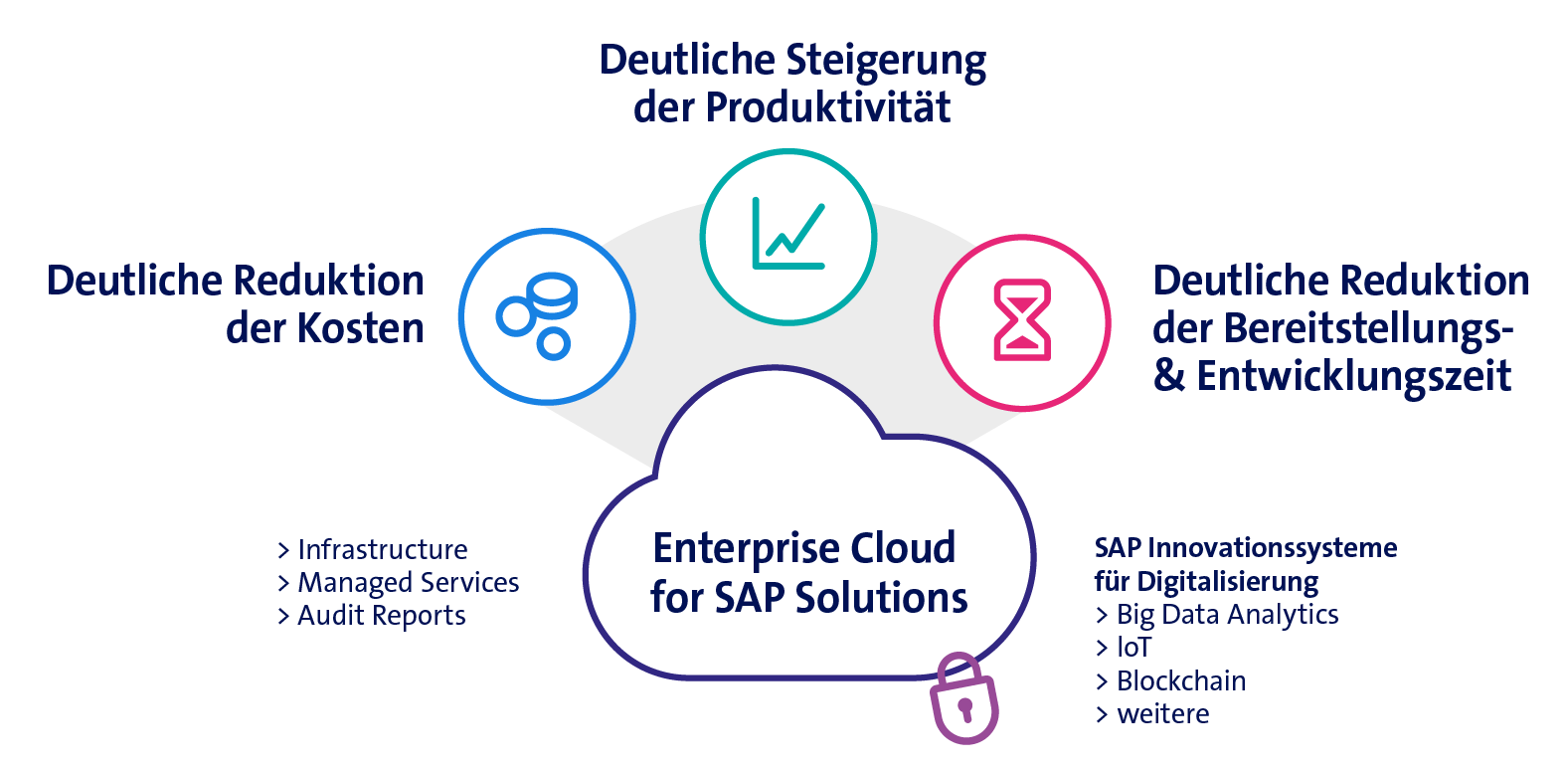 Mit der Enterprise Cloud for SAP Solutions von Swisscom können Sie Ihre bestehende SAP Landschaft sicher betreiben und sich auf eine effiziente Unterstützung bei der Umstellung auf S/4HANA verlassen. Kombinieren Sie diese mit weiteren Services und Cloud-Plattformen zu Lösungen, die Ihren betrieblichen und geschäftlichen Anforderungen entsprechen. Mit unseren Connectivity und Azure Angeboten begleiten Sie unsere zertifizierten Spezialisten auch bei hybriden Szenarien.