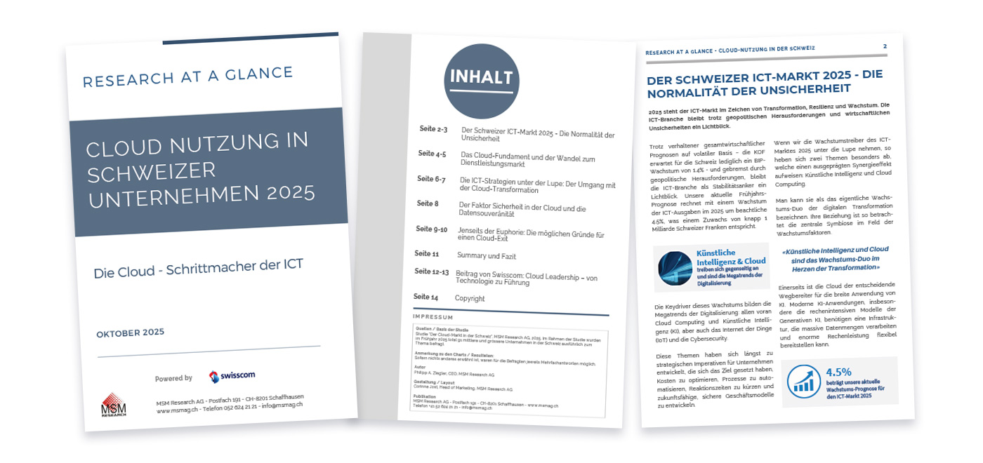 Cloud und Künstliche Intelligenz (KI) sind das aktuelle Wachstums-Duo der digitalen Transformation im Schweizer ICT-Markt. Dabei ist die Cloud unerlässlich für die Anwendung von KI und profitiert gleichzeitig von deren dynamischem Aufstieg. Dieses Duo eröffnet neue Chancen für Innovation und Effizienz, stellt Unternehmen aber vor grosse Herausforderungen in puncto Sicherheit und Datensouveränität. Schweizer Unternehmen sind nun gefordert, ihre Cloud-Strategien kritisch zu überdenken und anzupassen, um Cloud und KI voll auszunutzen.