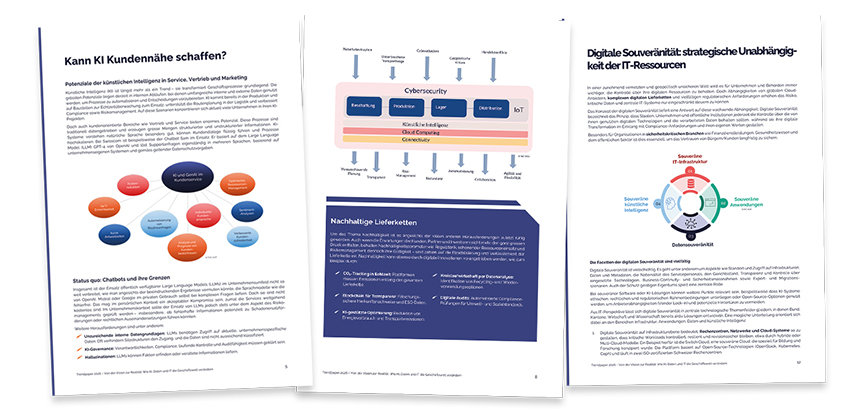 Laden Sie jetzt das Trendpaper herunter und erfahren Sie, unter welchen Bedingungen KI ihr Potenzial für Produktivität, Innovation und Wachstum wirklich entfalten kann – mit Empfehlungen für KMU und Grossunternehmen.