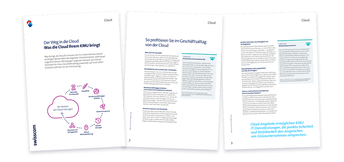 Was bringt die Cloud? Und wie soll Ihr Unternehmen diesen wichtigen Bestandteil der digitalen Transformation überhaupt angehen? Dieses Whitepaper zeigt den Nutzen von Cloud-Diensten für Ihren Geschäftsalltag praxisnah auf und liefert konkrete Schritte für die Umsetzung.