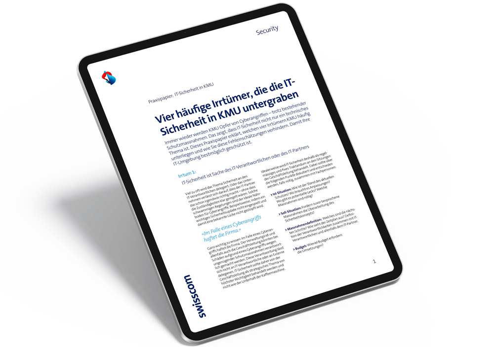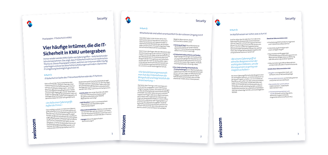 Trotz bestehender Massnahmen zur IT-Sicherheit sind Cyberangriffe nicht ausgeschlossen. In diesem Praxispapier zeigen wir auf, warum technische Vorkehrungen alleine nicht genügen und welche 4 Irrtürmer Sie vermeiden sollten.