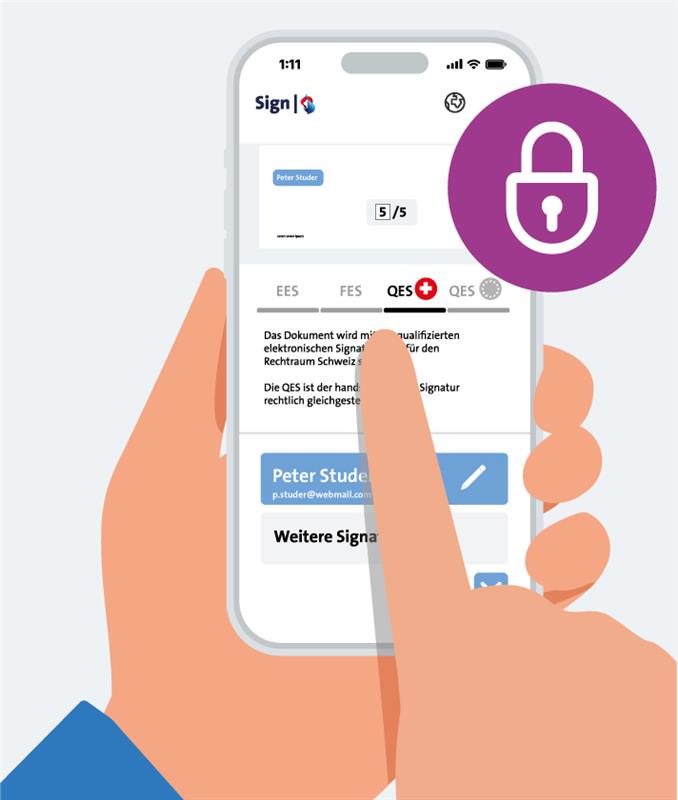 Ob einfache, fortgeschrittene oder qualifizierte elektronische Signatur – Swisscom Sign bietet Ihnen für jedes Dokument die passende Signatur. Die qualifizierte elektronische Signatur (QES) erfüllt die höchsten Sicherheitsanforderungen und ist sowohl in der Schweiz als auch in Europa rechtsgültig anerkannt. Egal, ob Sie als Privatperson, KMU, Grossunternehmen oder Softwareanbieter agieren – mit Swisscom Sign integrieren Sie digitale Unterschriften schnell, sicher und nahtlos in Ihre bestehenden Prozesse.