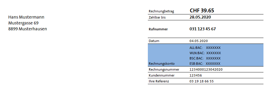, wann Ihr Konto belastet wird. Bitte zahlen Sie bereits erhaltene Swisscom Rechnungen oder solche ohne Vermerk wie gewohnt ein.