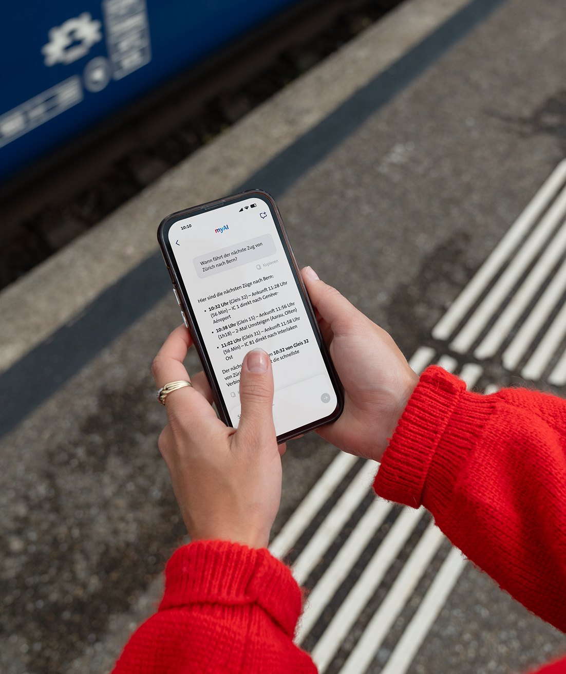 myAI verbindet Sie nahtlos mit den Services, die Sie täglich nutzen: Fahrpläne, Wetterprognosen, blue TV und mehr. Wir entwickeln myAI kontinuierlich weiter und integrieren neue Funktionen basierend auf Ihrem Feedback.
