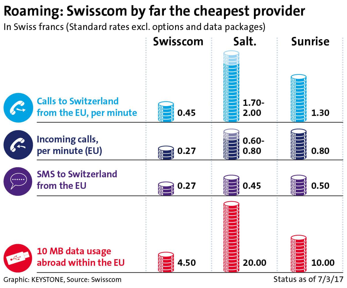 And it’s not just Natel infinity customers who save in other countries: Swisscom is dropping the prices for data packages in the EU by more than 20% for all customers. That means 200 MB data for just CHF 15, or the 1 GB package (1024 MB) for CHF 39. Swisscom is also reducing the costs of mobile surfing outside the EU: in key destinations outside the EU, 200 MB now costs just CHF 19. Swisscom has the most affordable roaming service in the Swiss market by far. Even compared to the major European providers, Swisscom is in an unbeatable position – customers of the German market leader pay CHF 23.80 for a 200 MB EU data package, around 60% more than Swisscom customers. Booking a package through the Swisscom cockpit at cockpit.swisscom.ch is simple.
