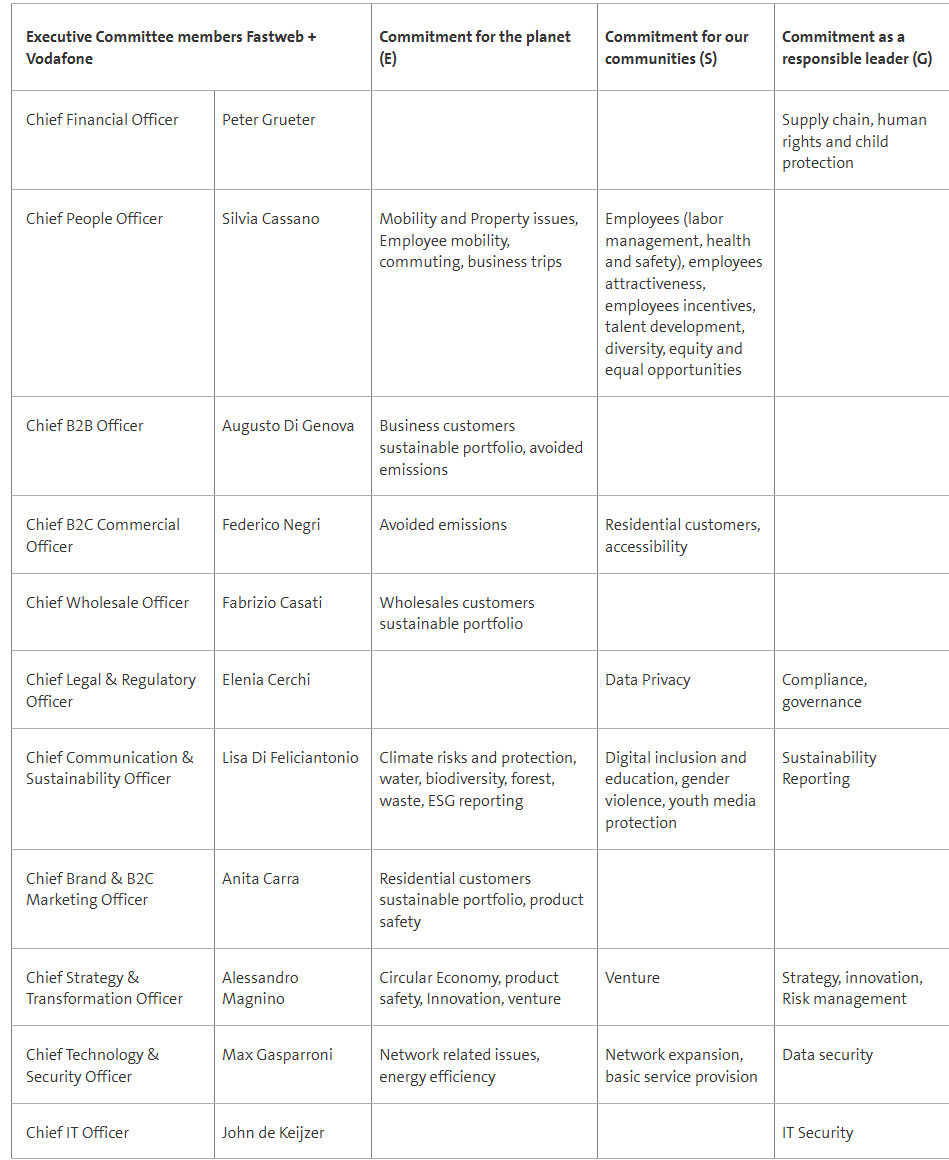The Executive Committee of Fastweb + Vodafone has the following controlling instruments:
