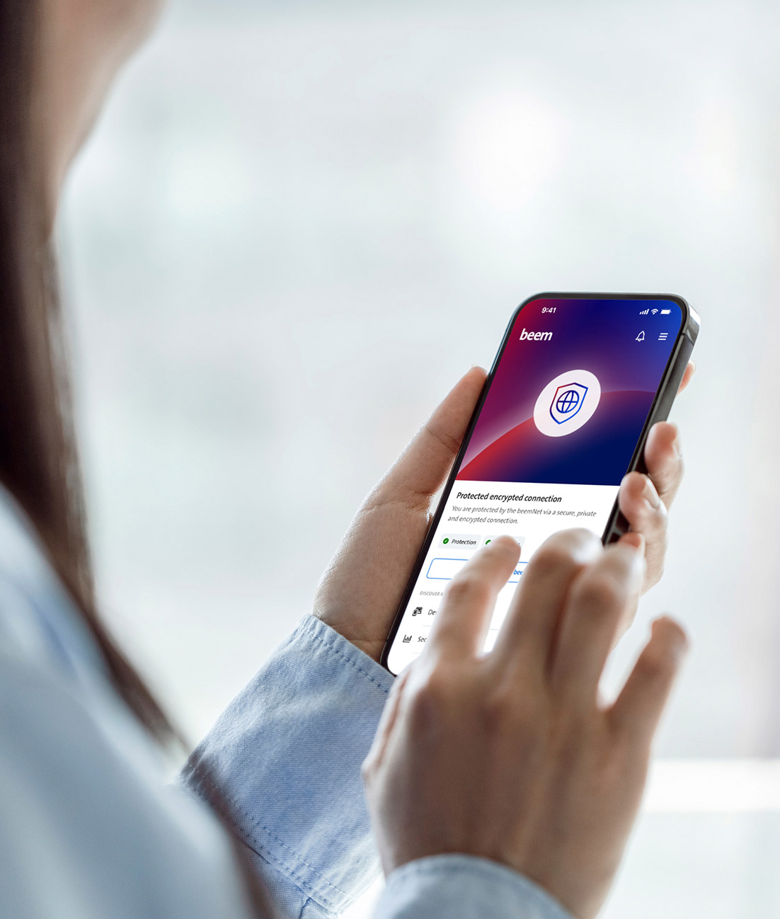 The beem app enables users to surf securely and access company data even when using devices in third-party networks outside the Swisscom mobile and broadband network.