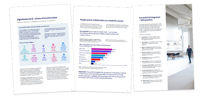 The Swiss insurance industry faces a digital, AIdriven tipping point. This whitepaper analyses key drivers, positions AI as a decisive competitive factor, and outlines regulatory requirements in Switzerland and the EU. Insurers learn how to tackle legacy IT, data protection and adoption, apply best practices for successful AI implementation, and build sustainable innovation. It highlights data quality assurance, strategic rollout and efficient AI use, plus exclusive market insights and concrete recommendations.