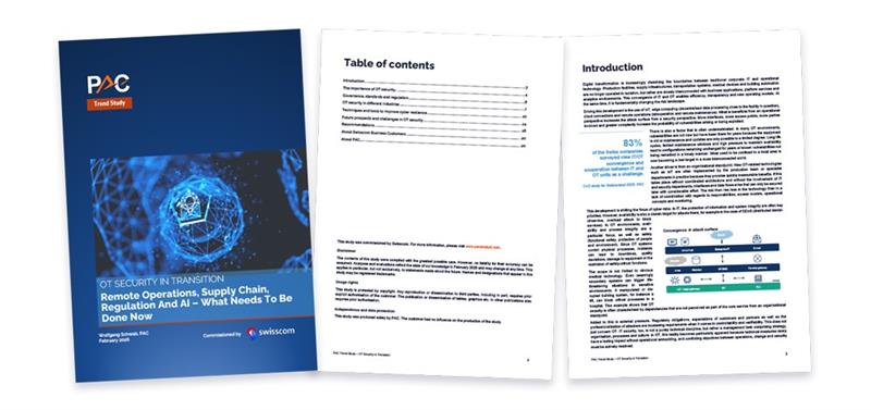 The PAC trend study analyses how governance models, standards and technical measures are implemented in sectors with high availability requirements and strict regulations – such as manufacturing, health, utilities and transport. It demonstrates practical and targeted ways to manage OT security, prioritise risks and ensure operational security in the long term.
