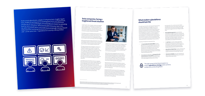 A modern Security Operation Centre: the right response to emerging threats Professional cyber attacks, complex IT infrastructures, tightened regulatory requirements and the use of new technologies are leading to a heightened threat situation for Swiss companies. New Security Operation Centres are providing the skills required to detect and respond to increasing cyber risks. Detection times are being shortened, potential damage is being reduced and – at the same time – expenditure on security is being limited.