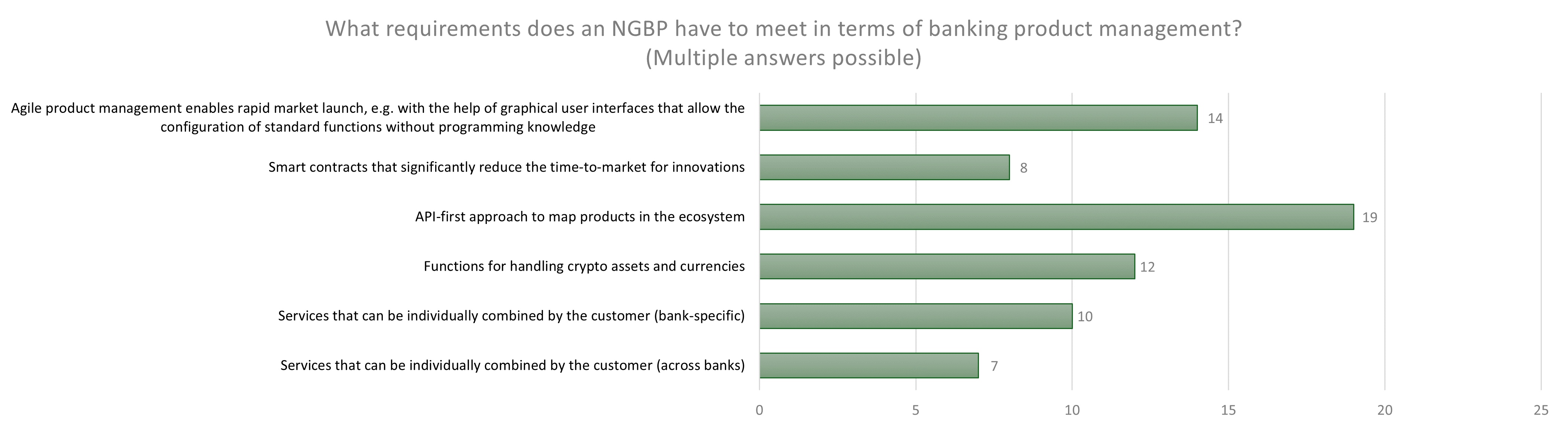 The most frequently mentioned requirements for increasing the speed of innovation are an API-first approach, agile product management with low-code/no-code and support for new asset classes such as crypto assets.