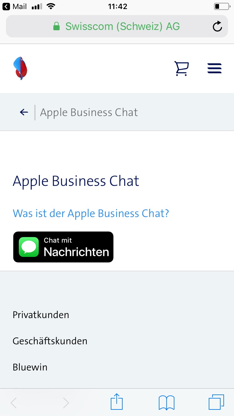 Apple Business Chat: nouvelle possibilité de contacter le Service à la clientèle de Swisscom