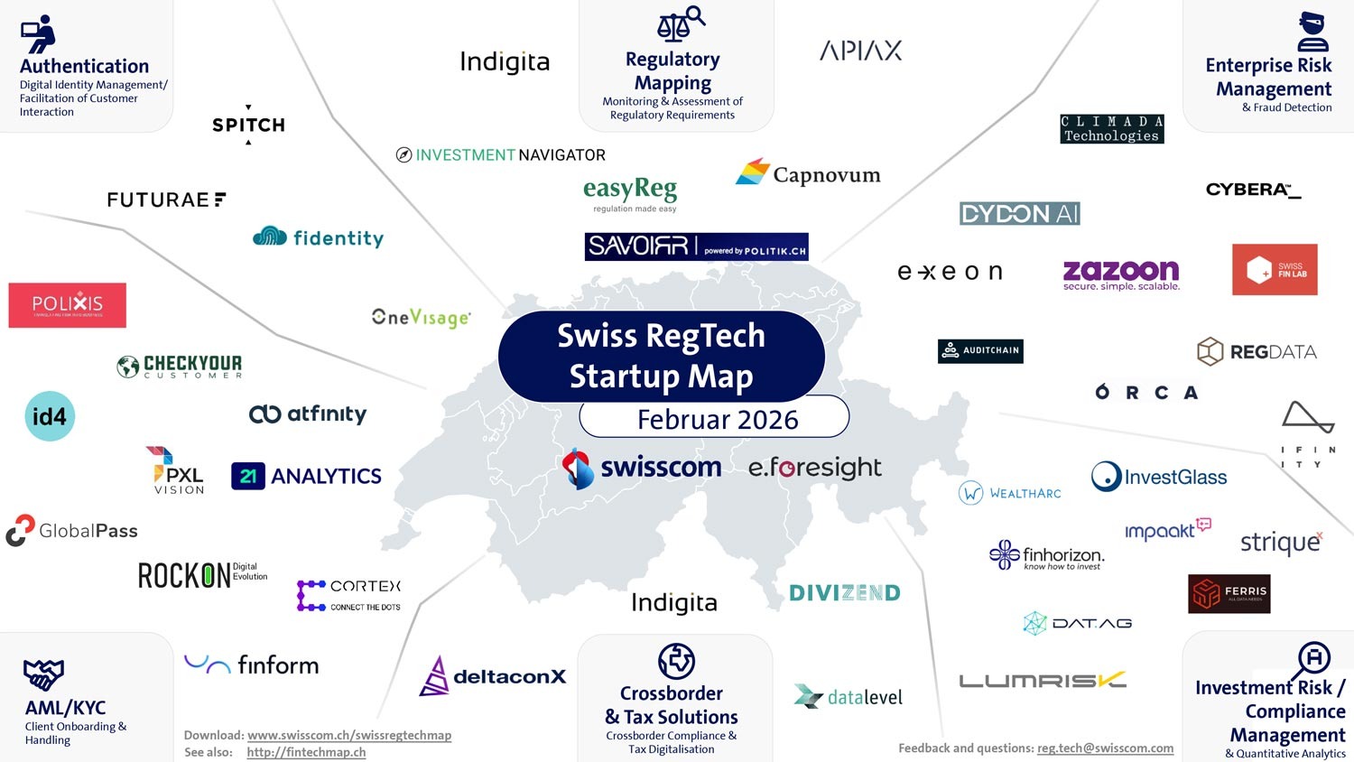 Tous les trimestres, Swisscom publie, aux côtés de e.foresight, un aperçu du marché des startup suisses RegTech, avec une catégorisation par champs d’action.