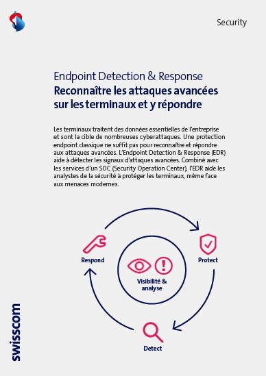 Une protection classique composée d’un anti-malware et d’un pare-feu basés sur la signature ne suffit pas pour détecter les attaques avancées sur les terminaux et y répondre. L’Endpoint Detection & Response (EDR) contribue à détecter les attaques avancées et à engager des mesures de réponse ciblées.