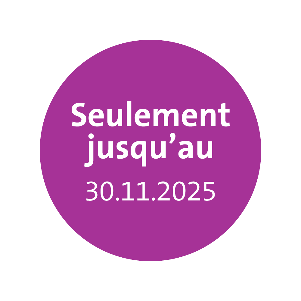 La durée minimale du service est de 24 mois et les frais de mise en service s’élèvent à 99.90. Offre valable jusqu’au 30.11.2025, non disponible en cas de simple changement d’abonnement. Non cumulable avec d’autres promotions.