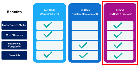 "Modern Application" offre una soluzione innovativa grazie alla combinazione di tecnologie pro e low-code. Questa sinergia ci permette di combinare l'agilità e la velocità del low-code con le capacità robuste e versatili dello sviluppo pro-code.