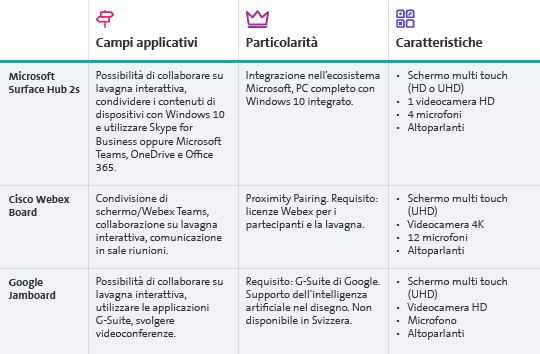 Nel 2017 Google ha presentato un prodotto simile, denominato «Jamboard», che comprende funzioni quali whiteboard, accesso diretto alla memoria su cloud e videoconferenze. Come il Surface Hub e la Webex Board, anche la Jamboard fa parte di un ecosistema più ampio – in questo caso la G-Suite di Google. Al momento la Jamboard non è disponibile in Svizzera.
