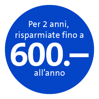 L’ammontare dello sconto dipende dalla versione di connessione internet selezionata. Nei primi 2 anni lo sconto annuo è pari a 360.– con Internet S, a 480.– con Internet M e a 600.– con Internet L.