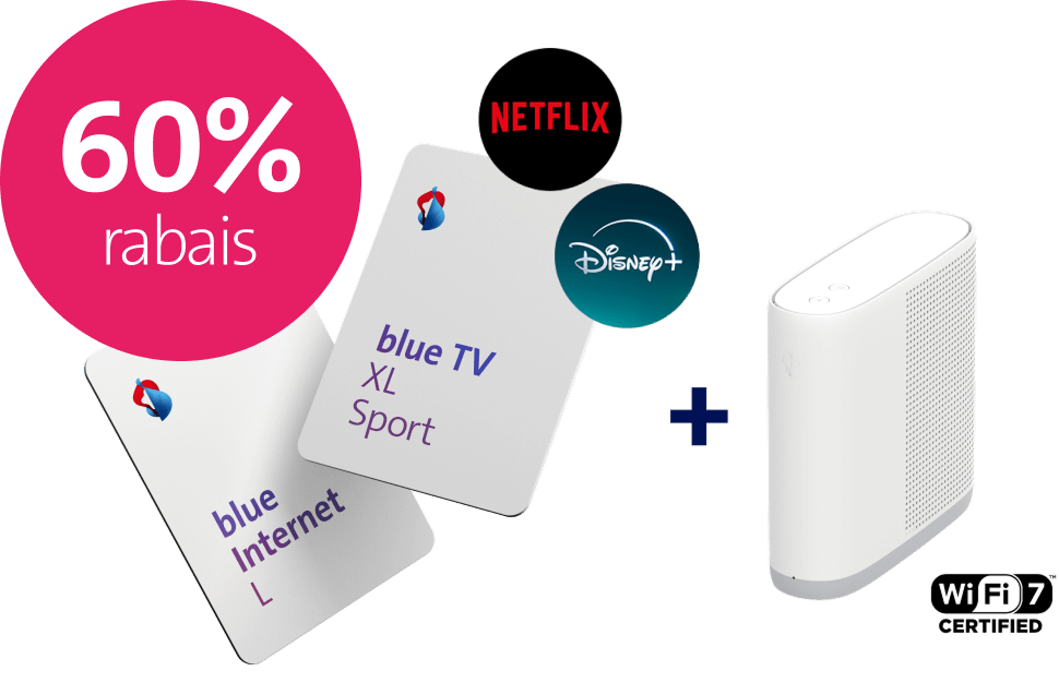 Stipulando un nuovo abbonamento blue Internet con blue TV e eneficiate di sconti interessanti per 12 mesi. Ricevete inoltre gratuitamente il TV-Box e il router WLAN adatto. E in caso di ordinazione online, vi regaliamo i costi di attivazione del nuovo abbonamento Internet per un valore pari a 99.90.