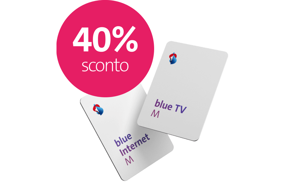 L’unica condizione è che venga stipulato un nuovo abbonamento blue Internet per 24 mesi. Per poter approfittare dell’ulteriore Sconto Combinato, serve un abbonamento Mobile. Le condizioni dettagliate dell’offerta sono riportate in fondo alla pagina.