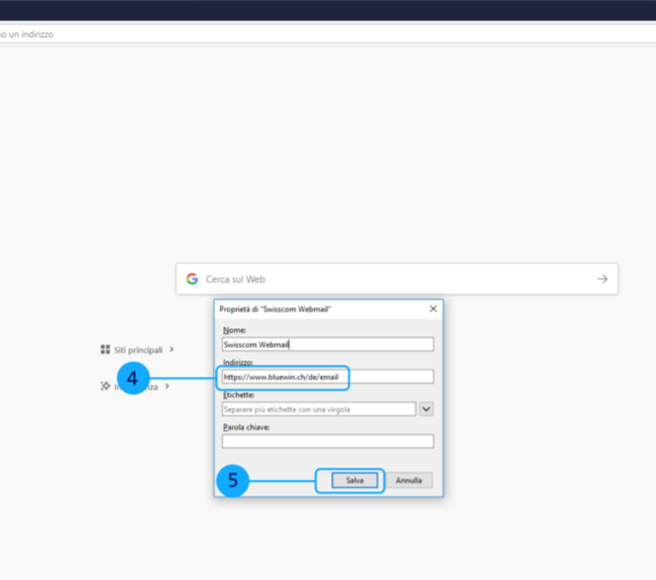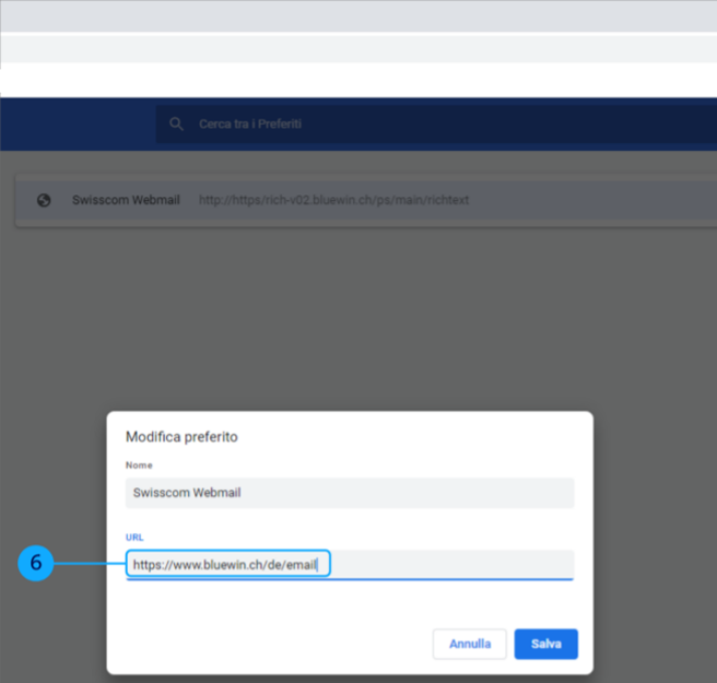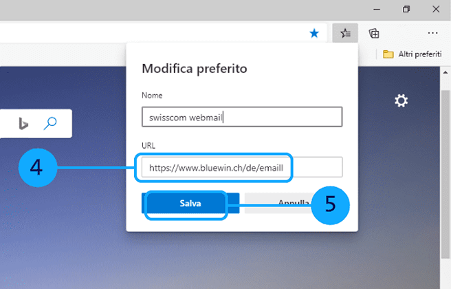 Scoprite come modificare i segnalibri / preferiti come ad esempio la Webmail di Swisscom. Selezionate il suo browser internet tra le icone seguenti e seguite le istruzioni passo a passo.